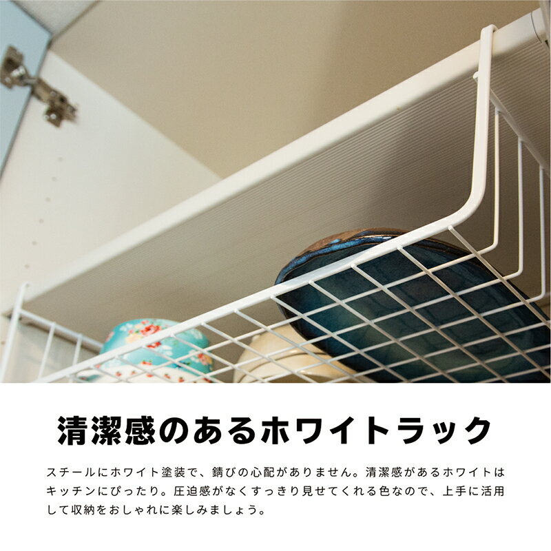 商品説明使い勝手の良い場所に収納場所を作れる、戸棚下収納ラックです。
