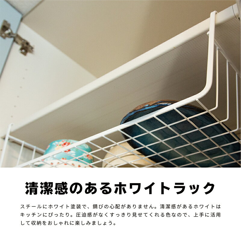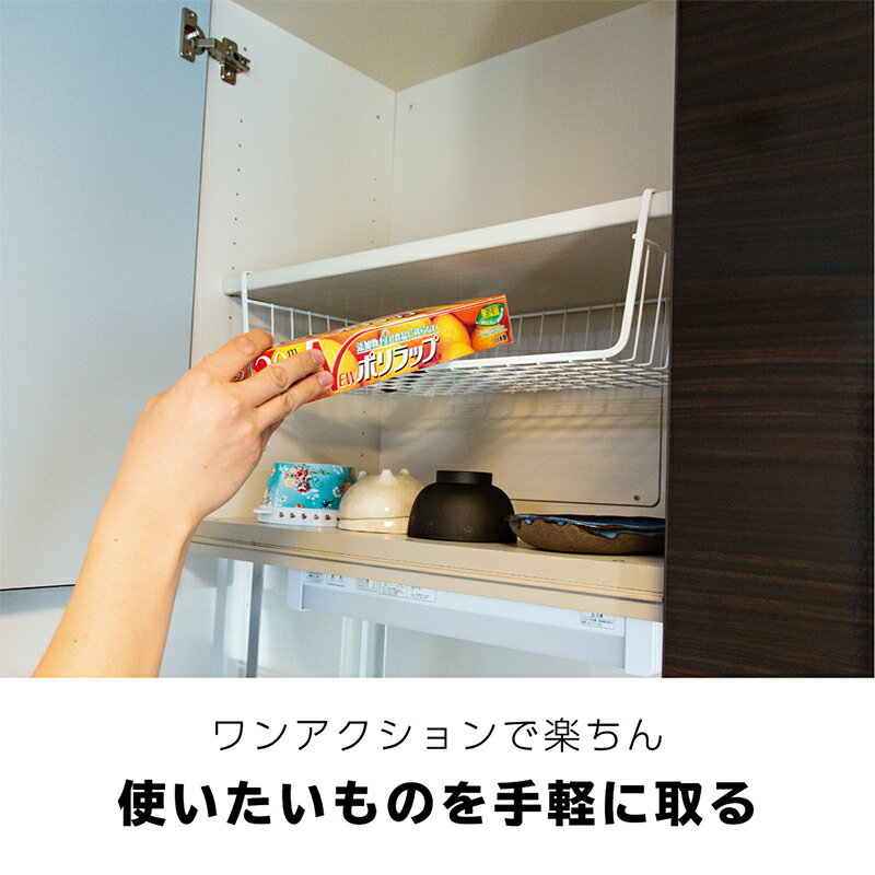 商品説明使い勝手の良い場所に収納場所を作れる、戸棚下収納ラックです。